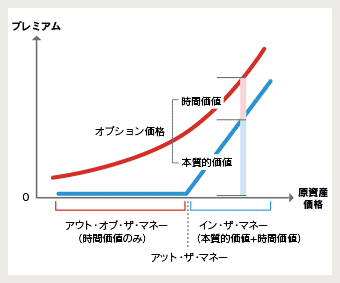 オプションの価値であるプレミアムは、本質的価値と時間価値から構成されます。