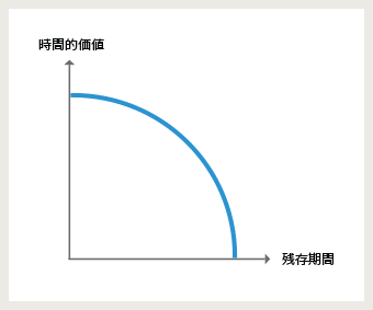 時間価値とは、権利行使によって利益を得られる可能性のことです。時間経過とともに減衰し、最後にはゼロになります。