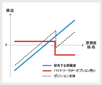 バイナリーオプションを用いたヘッジ 権利行使時点の損益図